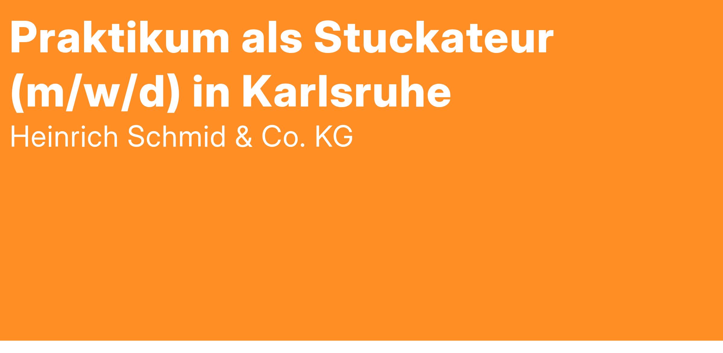 Über 7.000 Menschen an mehr als 200 Standorten setzen sich jeden Tag bei der familiengeführten Unternehmensgruppe Heinrich Schmid dafür ein, dass Handwerk Zukunft hat. Mit einer großen Anzahl an verschiedenen Gewerken möchten wir unseren Kunden nicht nur höchste handwerkliche Qualität, sondern auch mehr Vielfalt aus einer Hand bieten. Wir sind Handwerker aus Leidenschaft mit dem Blick fürs Wesentliche: den Menschen. Unsere Mitarbeiter sind vor Ort und zeigen täglich, was es heißt ein Heinrich Schmid zu sein: Handwerker, Teamplayer, Unternehmer, Mensch. Verstärke unser Team in Karlsruhe zum nächstmöglichen Zeitpunkt als