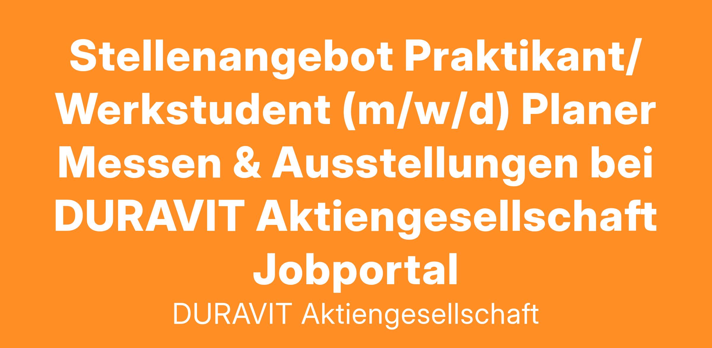 Du bist auf der Suche nach einem Praktikum, einer Werkstudententätigkeit oder einem Unternehmen, dass Dich bei Deiner Abschlussarbeit unterstützt? Du möchtest Dein theoretisches Wissen aus den Vorlesungen in die Praxis umsetzen? Dann werde Teil der Duravit-Familie und nutze die Chance, eine Weltmarke mitzugestalten! Gib Deinem Studierenden-Alltag ein Upgrade! Wachse mit uns und teile unsere Leidenschaft für die ganzheitliche Gestaltung des Lebensraums Bad – mit individuellen Badmöbeln, exklusiver Keramik und erstklassigen Armaturen. Duravit ist im Herzen ein unabhängiges Familienunternehmen – und global auf dynamischem Wachstumskurs. Möglich ist das nur durch unsere über 7.000 engagierten Mitarbeitenden weltweit, die bei uns im Mittelpunkt stehen und gemeinsam eine Vision verfolgen. Und genau hierfür suchen wir Teamplayer, die Lust haben, gemeinsam neue Wege zu gehen - einfach machen, statt nur drüber zu reden. Upgrade your workday!
