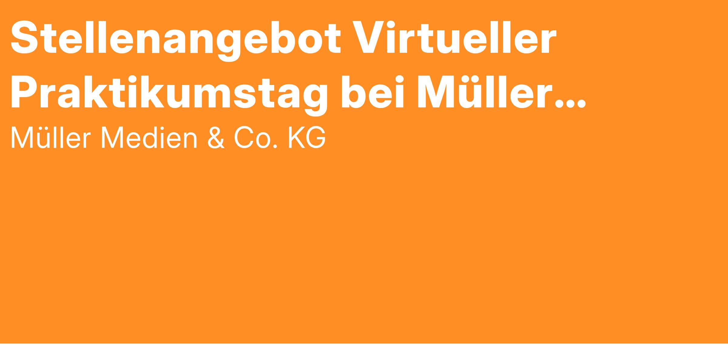 Du bist bereit für einen Tag voll spannender Eindrücke aus der Medienwelt? Bei Müller Medien warten interessante und abwechslungsreiche Aufgaben auf dich. Und das alles online! Bewirb dich jetzt für einen virtuellen Praktikumstag und überzeuge dich selbst von einer Ausbildung zum Kaufmann (m/w/d) für Marketingkommunikation!