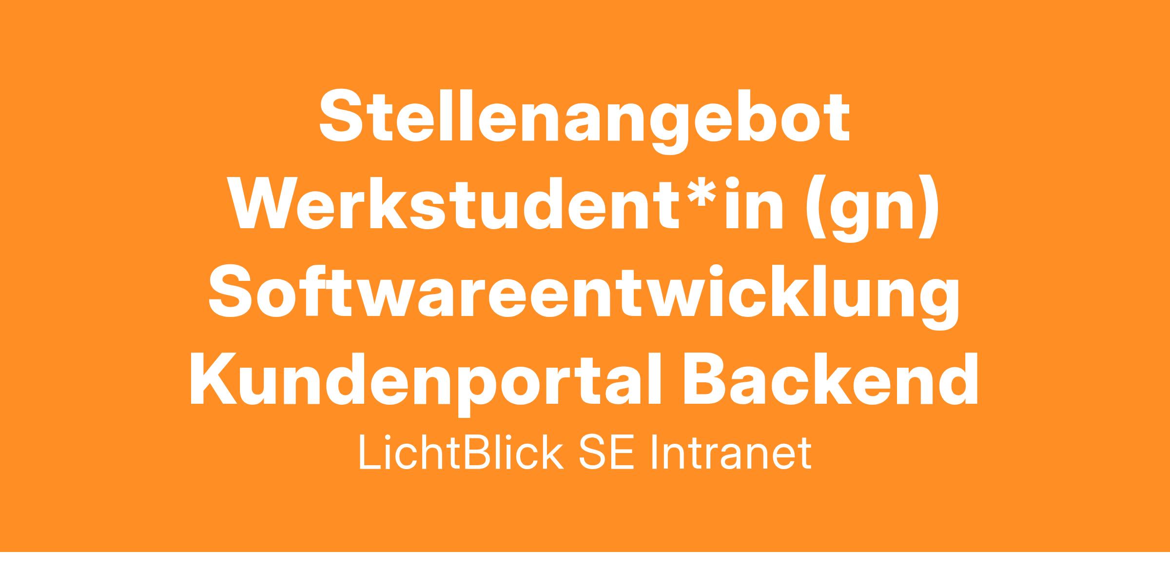 - Als Werkstudent*in in der Softwareentwicklung unterstützt du in einem unserer agilen Produktteams die Backend-Entwicklung für unser Kundenportal