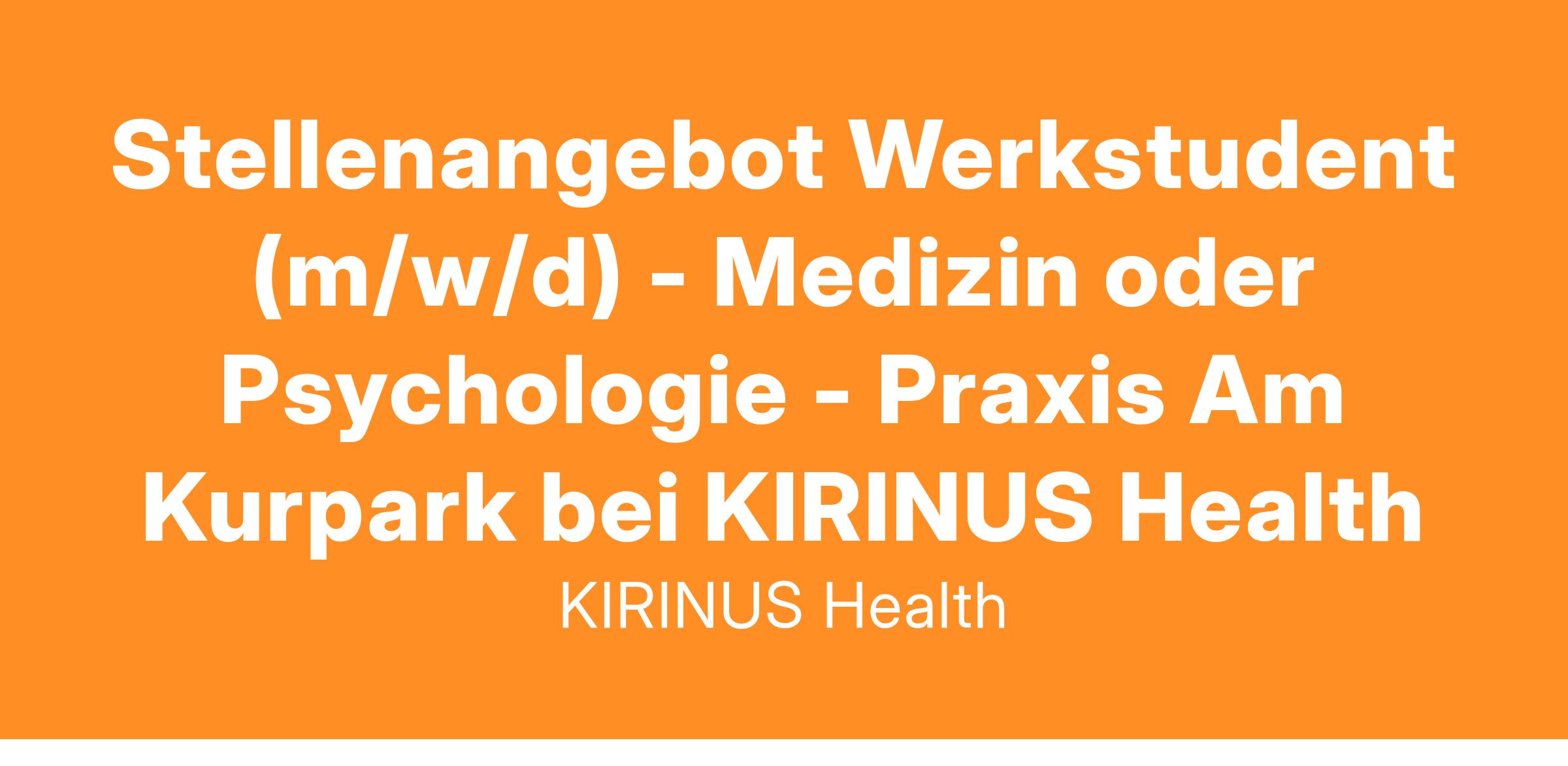 Wir suchen ab sofort für unser KIRINUS Praxis Am Kurpark in Bad Tölz einen Werkstudent (m/w/d) aus dem Bereich Medizin oder Psychologie, der oder die gerne in einer interdisziplinären Praxis für Neurologie, Psychiatrie und Psychotherapie unterstützen und wertvolle Einblicke sammeln möchte.