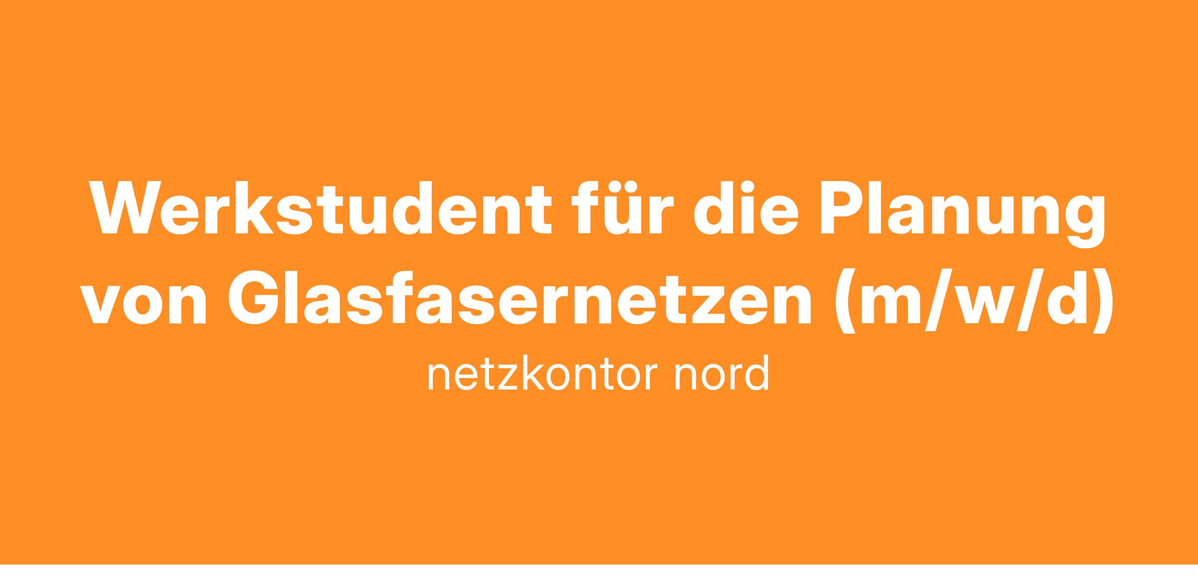 Wir suchen dich als Werkstudent für die Planung von Glasfasernetzen (m/w/d) mit mindestens 15h/Woche in Neumünster.
