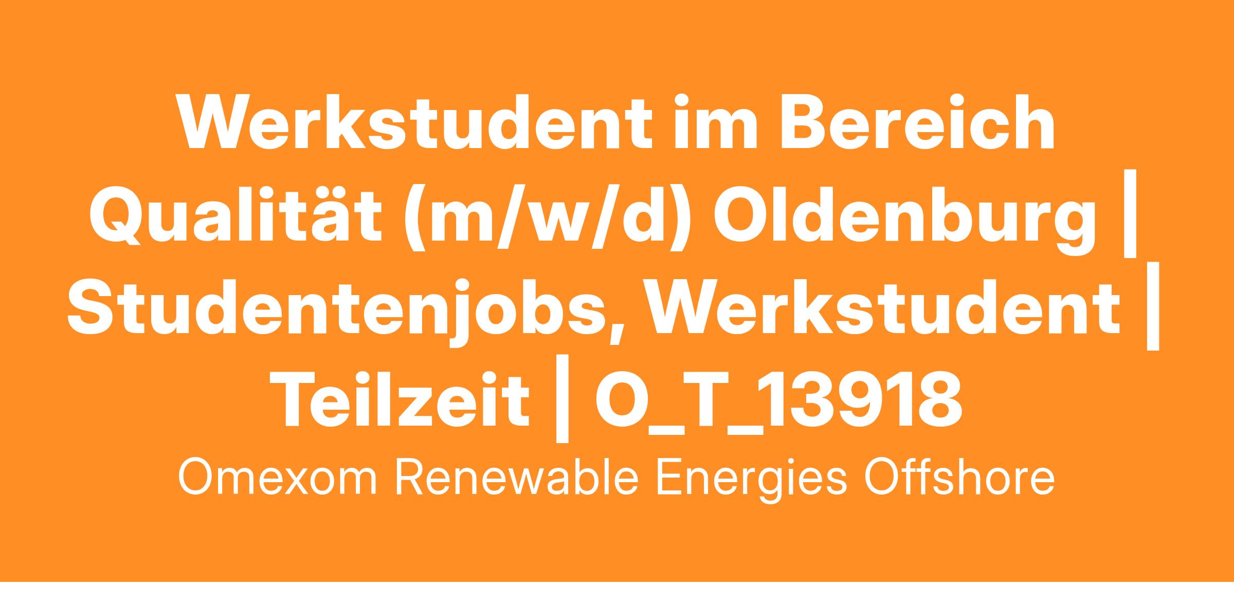 Werkstudent im Bereich Qualität (m/w/d) Oldenburg | Studentenjobs, Werkstudent | Teilzeit | O_T_13918