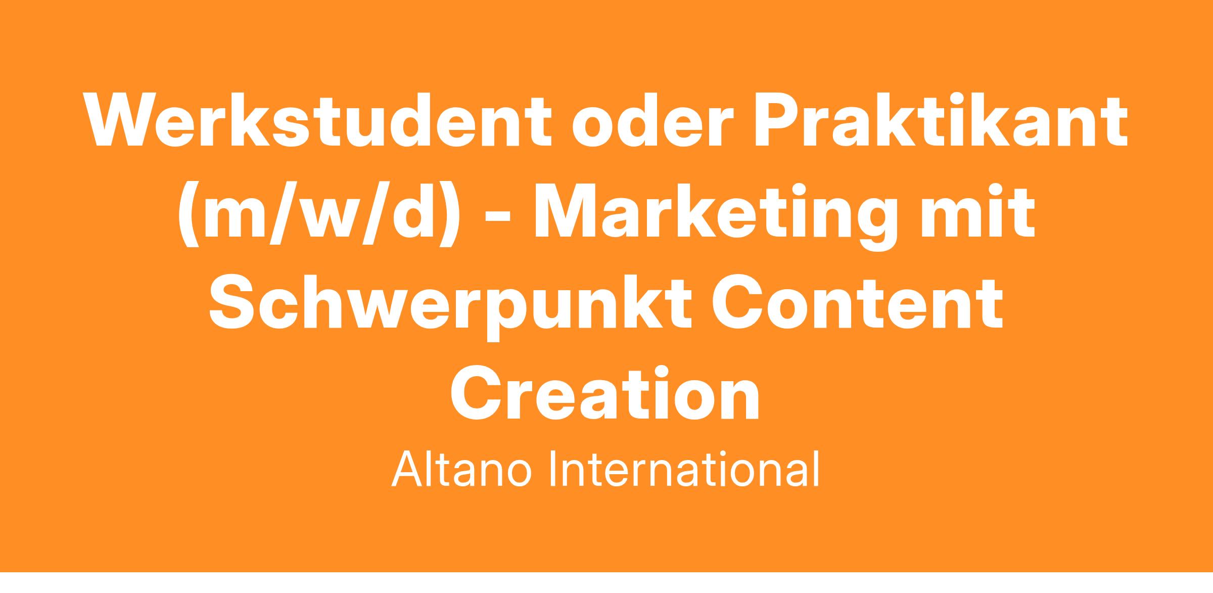 Wir suchen Dich für ein spannendes Praktikum im Bereich Marketing mit Schwerpunkt Content Creation - Gestalte mit Altano Deinen Sprung aus dem Hörsaal in die Praxis.